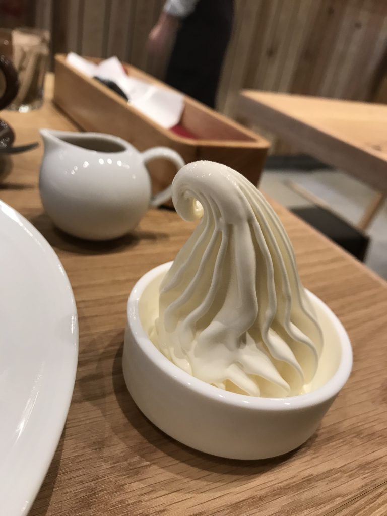 小さなカフェがあると、つい入ってみたくなりますが、そういう女子で店はにぎわっています。 パンやマフィンが並んでいますが、あえて、チーズタルトを。 クリームとのバランスは最高ですが、難をいえば、タルトの底が分厚くてかたいと