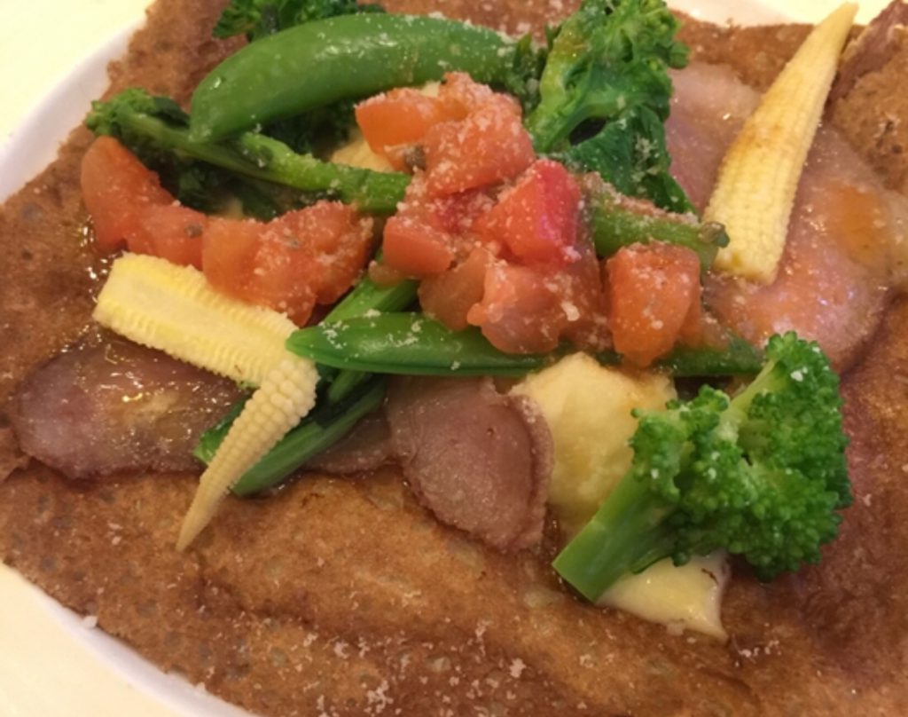 フランス・ブルターニュ地方の郷土料理である「ガレット」は「そば粉」を使い、クレープのように薄く延ばして焼いています。 クレープは両面焼くのですが、ガレットは片面だけ焼いて生ハムや肉や魚介類などを包み、食事に
