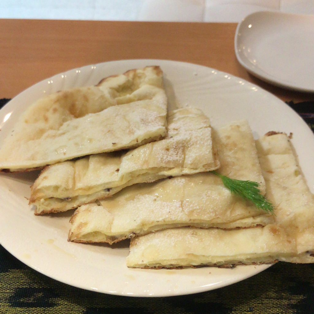 ラムレーズンクリームチーズのナン@わのわカフェ スイーツ系のナンがうんまーい! https://tabelog.com/osaka/A2701/A270203/27062884/ わのわカフェ 06-6