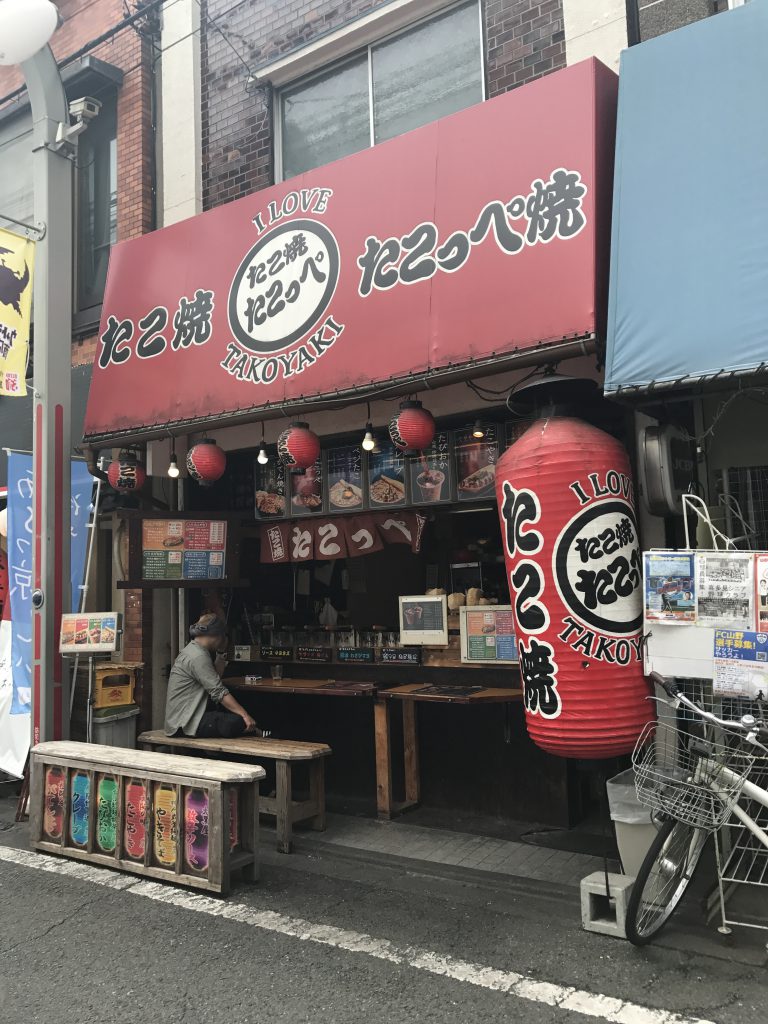 近年、東京でもたこ焼き店がふえています。 こちらはクレープもあて、地元の学生さんも次々きます。 大阪の昔ながらの雰囲気をもつお店です。