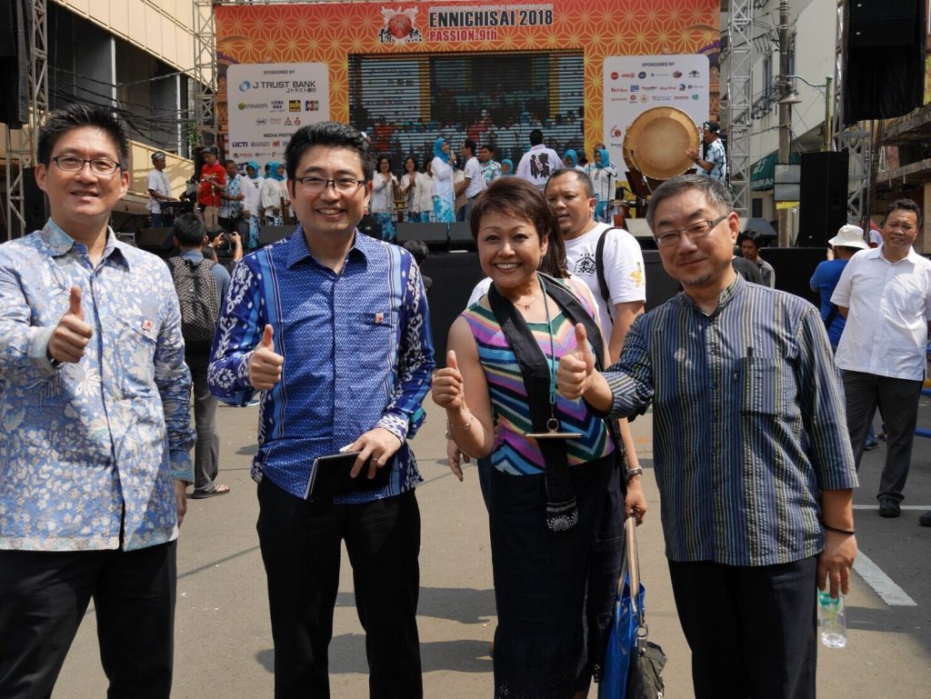 大使館の中村公使、国際交流基金の塚本所長、ジョグジャカルタ特別州政府観光局黒田さんと記念撮影後、 屋台を回りました。 讃岐出身の皆さんの屋台での、釜玉もおいしかったですし、インドネシアにはだしの意識が希薄なので、日