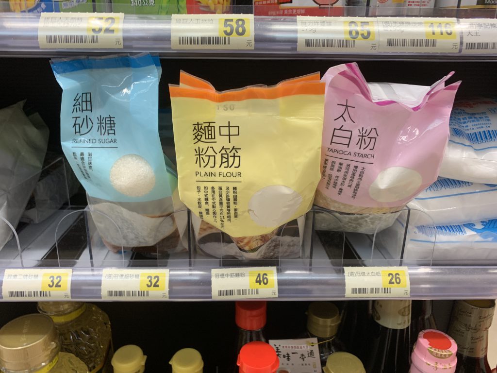 台北はセブンイレブン、ファミリーマートが多く、助かります。 売場も日本みたいな品ぞろえで、売ってる粉は中力粉。 以前、こちらの薄力粉を買って帰って、たこ焼きを作ったんですが、あまりおいしいのができなかったのを思い出しまし
