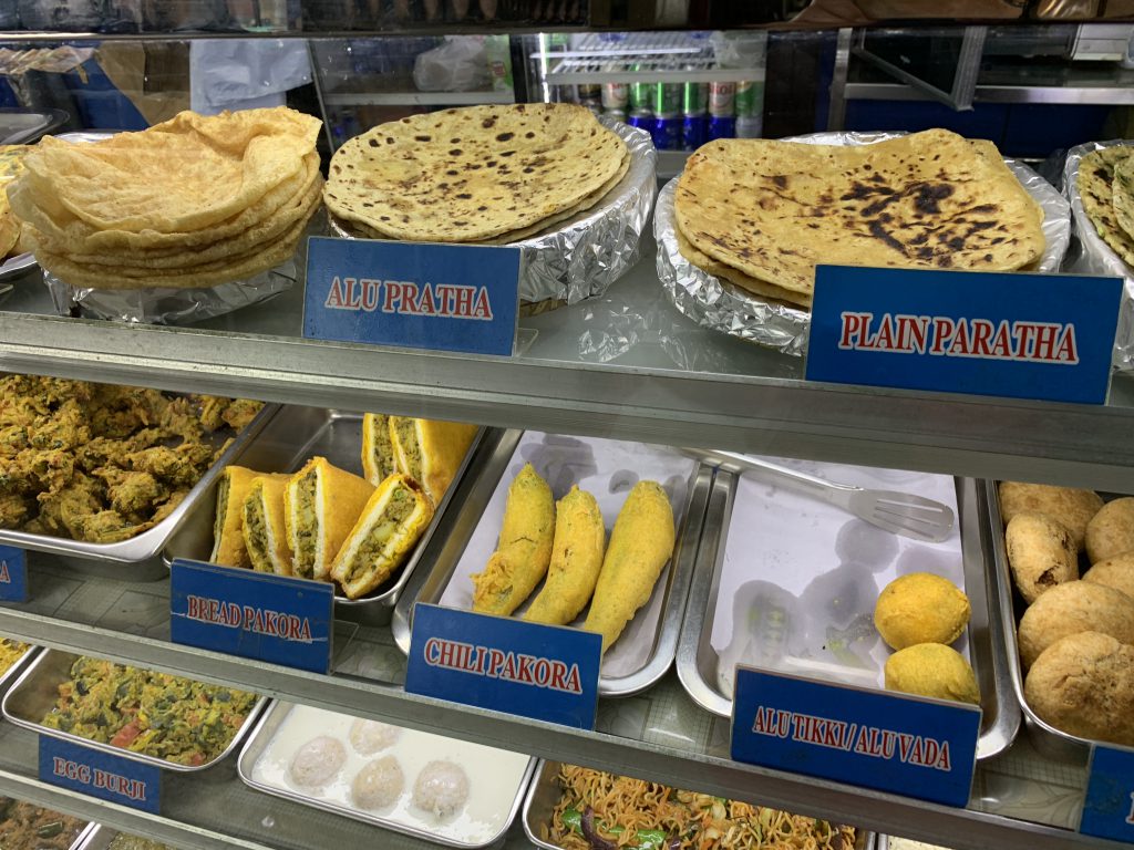 九龍半島のチムサーチョイ駅そばの重慶飯店は、 昔、悪の巣窟だったそうですが、今はインド系のお店が並び 一人でも歩けなくはない雰囲気です。 驚いたのは、ロティやパラタやサモサ、惣菜、お菓子が並ぶ中にピザがあること。 40年