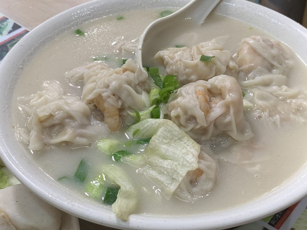 MRですと、最低1日5食は食べるので、夜には満腹、かと思ったら、意外とまだまだいけてしまうので、困ったものです。 こちらの海老雲呑は白湯スープで、地元の人気店。 ニラの水餃子も、見た目は武骨ですが、バランスがいいです。