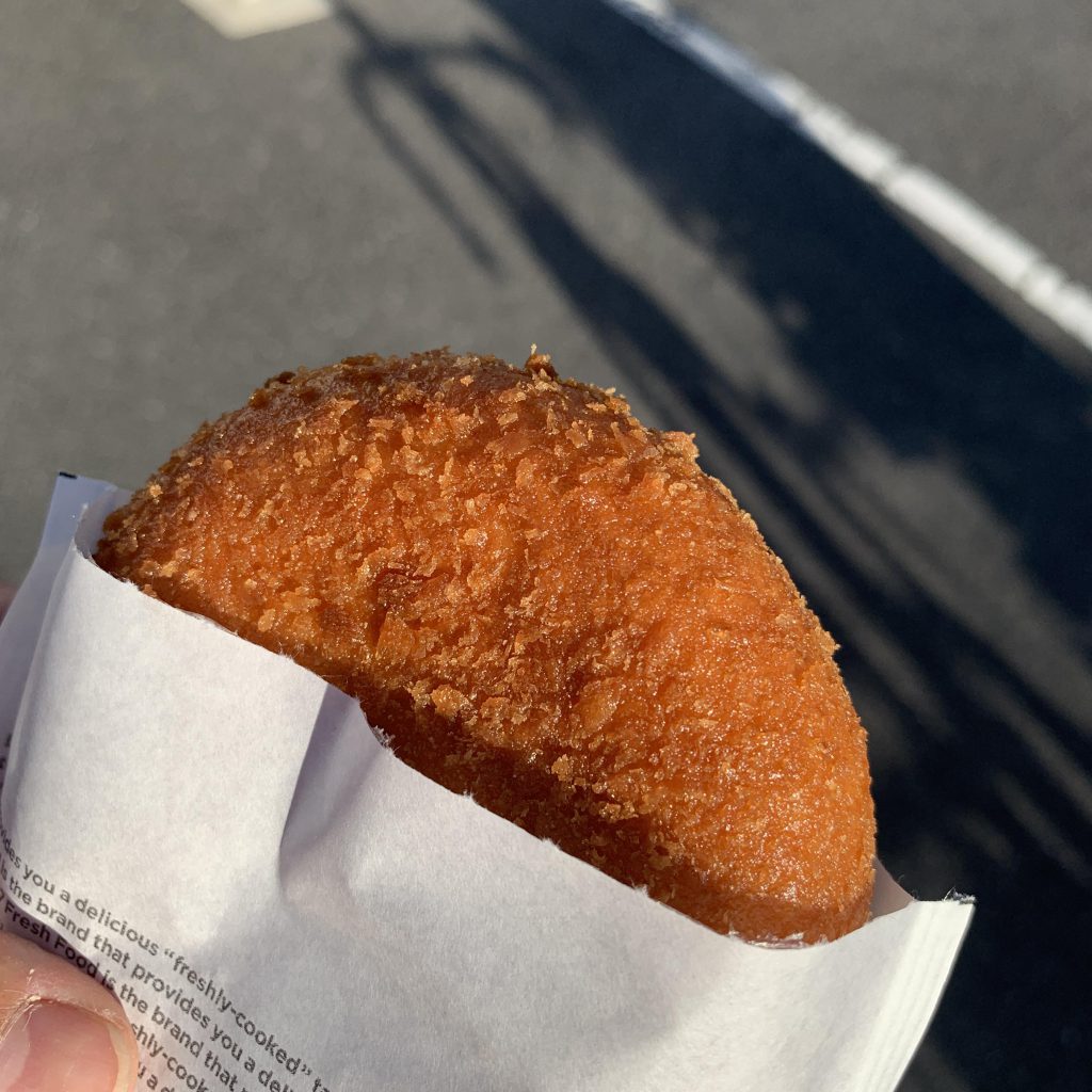 カリカリカレーパンというタイトルをみて、どれくらいカリカリなのか確かめました。 カリカリというのは言い過ぎですが、カレーの味わいも、揚げパンの食感も155円なら上出来だと思います。 昔、ピロシキを食べて、世界で一番おいし