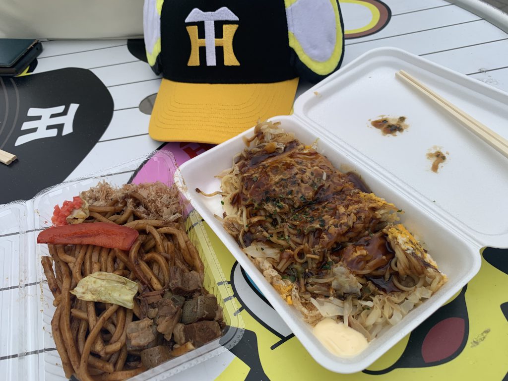 甲子園球場での粉もん祭りの初日、爽やかな新緑の風の中、素晴らしいスタートとなりました。出店してくださったお店の皆さま、関係者の皆さま、本当にありがとうございます。 お客さんも面白い方ばかりで、会長さんですね・・とお声がけ