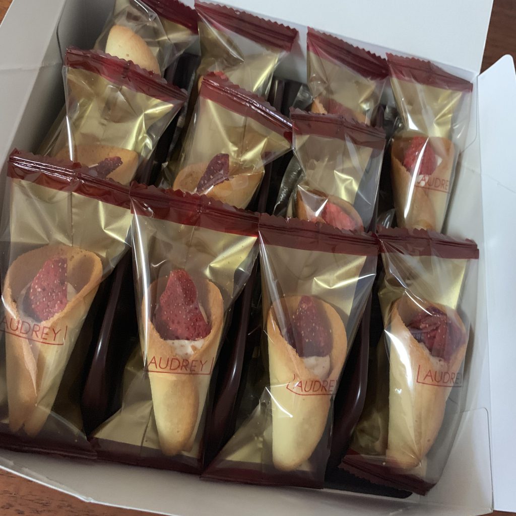このごろ、お土産にこれを頂くことが多くて気になっていたんですが、東京駅の売り場では売り切れ続出のようですね。 シガール系で、クリーム入り、ドライイチゴ。 女子の好きなものいいとこどりって感じですね。 ブランドにもその気配