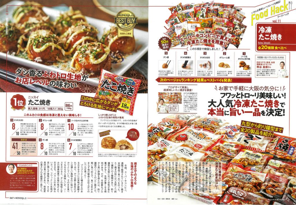 晋遊舎のMONOQLO誌において、冷凍たこ焼の比較が特集されました。