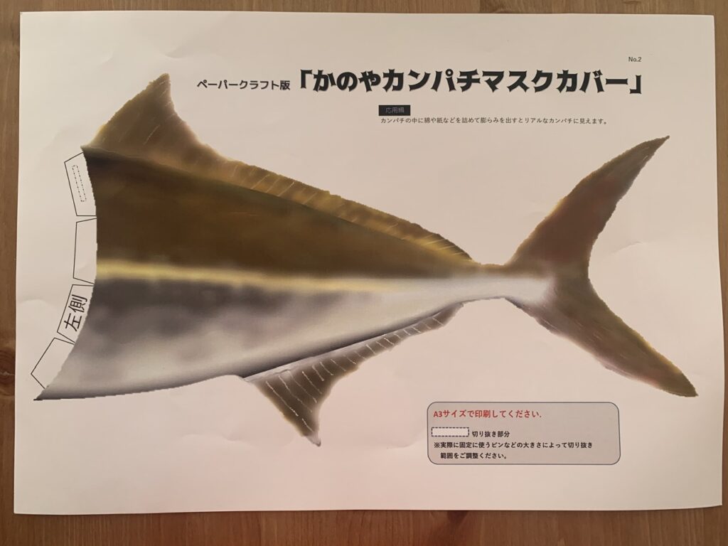 鹿屋通の方から、カンパチダンス用のマスクカバーと、もっちり食感がおいしい鹿屋の紅はるか芋フィナンシェをいただきました。 鹿屋は行ったことがないので、親子二代カンパチ好きとしては、とっても気になります。 カンパチーノカルパ