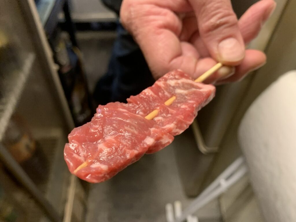 串カツの撮影があるので、改めてお店巡りをしています。尼崎では、串カツのお肉に使う部位や串の刺し方を教えていただきました。 こちらのお店は常連さんだけのお店ですが、コロッケもお塩をかけて、ジャガイモのうまみを感じながらいた
