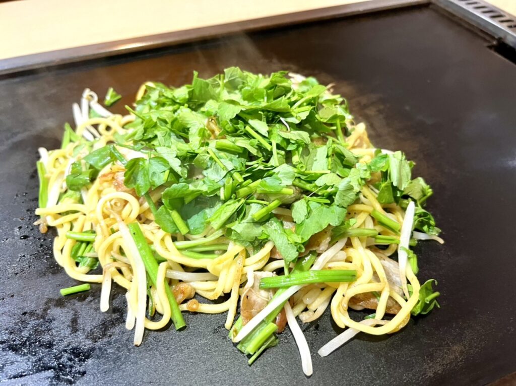仙台のお好み焼きもレベルが高くて嬉しくなります。 根っこがうまい、セリの焼きそば、最高!