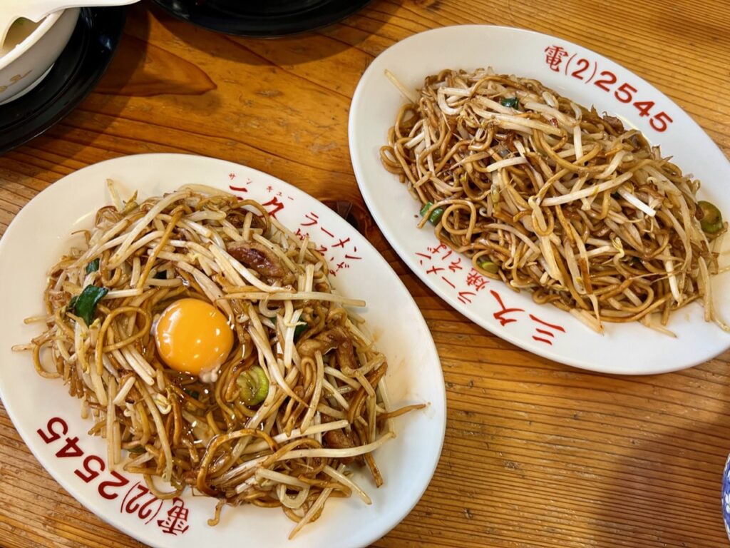 ラーメン、やきそばの三久さんへ。 あっさり豚骨のラーメン、味噌ラーメン、やきそば、やきそば生卵のせを頂きました! #焼きそば #日田焼きそば #麺益力 #麺ジャーズ #鉄板会議 #三久