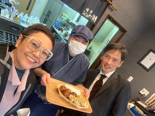 めんたいワイドでお馴染みの山際先生と博多阪急、うまか研究所で、たこ焼き教室でした! たこ焼きも数種類hご用意して、先生のピクルスやチャウダー、いちごゼリーで大満足のひと時、本当にありがとうございました! #日本コナモン協