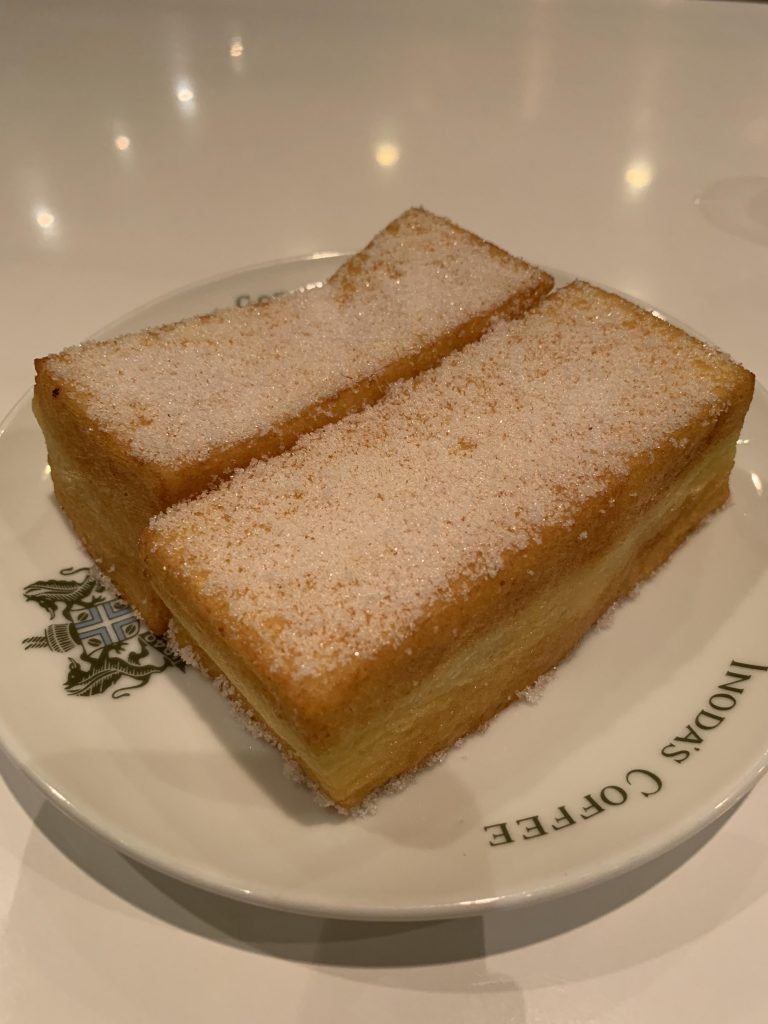 大好きなイノダコーヒーの本店でフレンチトーストを食べました。 ふわふわの食パン王国のお姫様みたいな存在で、お砂糖がかかってるのもたまりません。 卵液が中まで届いてないのも、昔ながらのフレンチトーストらしくて、こんなに食べ