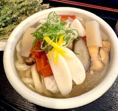 今年最後の蔵之介さん!しっぽく、海老餅天温玉醤油、春菊の天ぷらをいただきました。もちろん麺は少なめ。肌寒くなったお昼のご馳走✨…