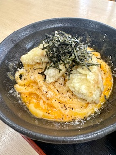 今年最後の蔵之介さん!しっぽく、海老餅天温玉醤油、春菊の天ぷらをいただきました。もちろん麺は少なめ。肌寒くなったお昼のご馳走✨…