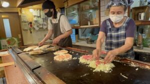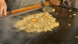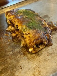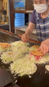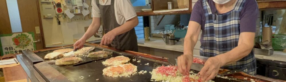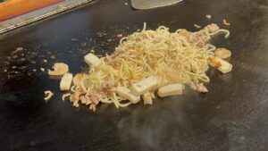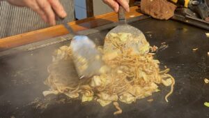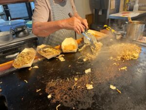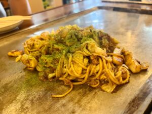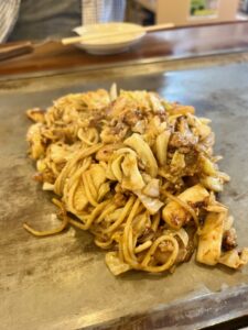 徳島のお好み焼はほかのエリアに比べて、ダントツの多様性。はやしさんは創業のお祖父様が神戸で食べた「にくてん」がきっかけということで、重ね焼きが大きな鉄板でどんどん焼かれ、持ち帰りのお客さんも多い人気店。焼きそばミックスはよせ焼きという名称。お好み焼は二つ折りというのも守っておられてありがたい事です。#徳島 #焼きそば #お好み焼き