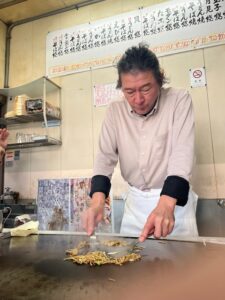 大好きなハルナさんへ。チャンポンそば焼とたこ焼を。チャンポンは具材いろいろの意味で、たこ焼は蛸の重ね焼きになります。蛸や大貝を入れるのは神戸では定番。でも最近大貝は入手困難😓 創業のおじいちゃんのスタイルを継承される三代目さん。お母さんの時代からのファンですが、三代目さんの焼き技も必見です! #okonomiyaki #お好み焼き #teppan #焼きそば #長田 #チャンポン #鉄板会議 #やきそば総研 #粉もん #konamon #食文化 #foodculture