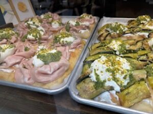 ダニエルの専門店でズッキーニのフォカッチャをいただきました。まだオープンして14ヶ月とベイビーなお店ですが、この盛り盛りで6€、リコッタチーズクリームが美味しくて、じわじわと人気上昇中! #バスク #basque #フォカッチャ #sansebastian #daniel