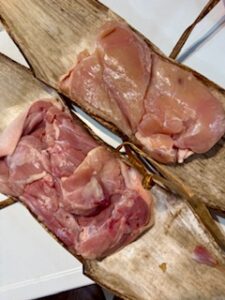久しぶりのつるやさんのかしわ!とり天と肝、蒸し鶏とムネとモモ2枚ずつ。モモはバジル私のせてオーブンへ。私の元気はつるやさんの鶏肉のおかげ です! #高槻 #鶏肉  #タンパク質