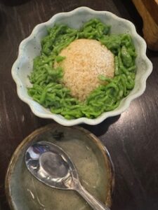 ルンピニ公園近くのカオソーイ店。建物の雰囲気が素敵ですが、チェンマイの食文化にもかかわらず提供の仕方も日本のスタイル。辛めなのでココナッツミルク氷のチェンドルに救われます。 #粉旅 #タイ #バンコク #カオソーイ